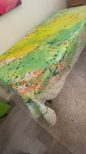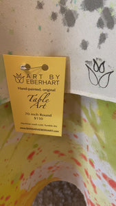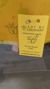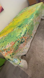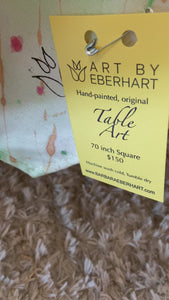 These beautiful warm splatters of color bring lots of joy. Beautiful Hand-painted Tablecloth adds festivity to your environment. Machine wash cold water, tumble dry. Remove...