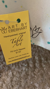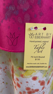 Beautiful Hand-painted Tablecloth adds festivity to your environment. Machine wash cold water, tumble dry. Remove promptly to avoid wrinkles.