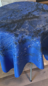 This Royal Blue Tablecloth has metallic silver paint, giving it a beautiful shimmer. Beautiful Hand-painted Tablecloth adds festivity to your environment, especially when combined with...