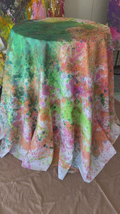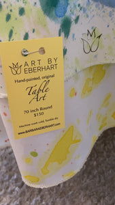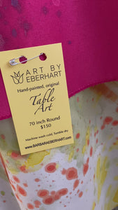 The splattered pattern swirls about the circular tablecloth. Beautiful Hand-painted Tablecloth adds festivity to your environment. Machine wash cold water, tumble dry. Remove promptly to...