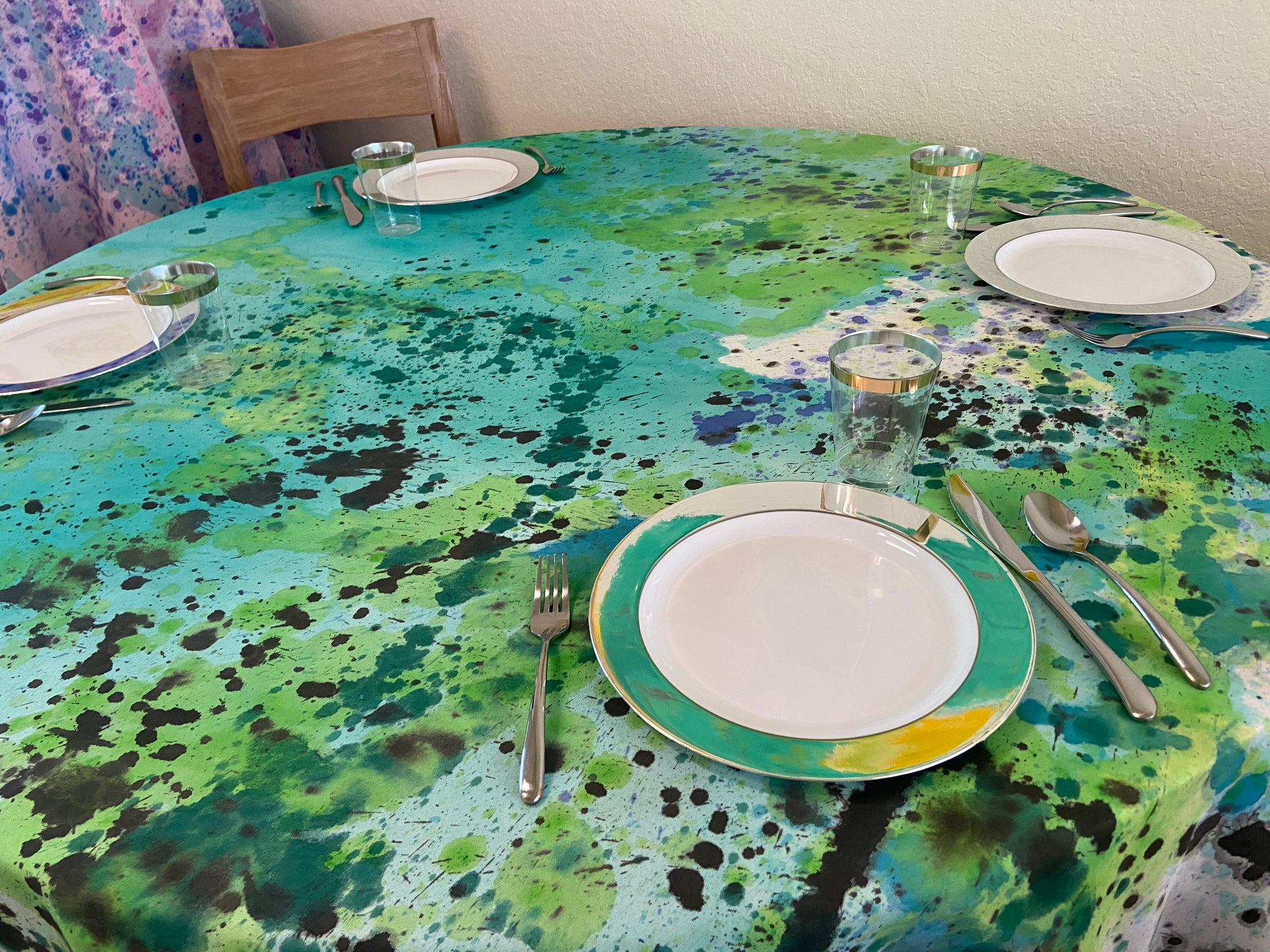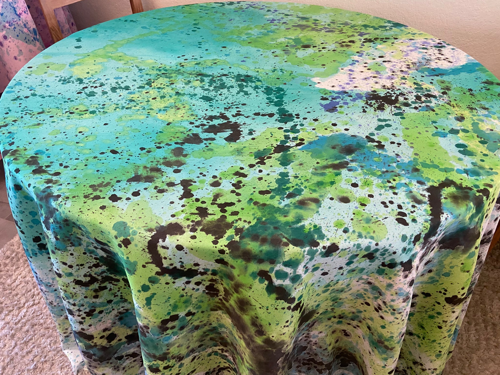 Soothing like a gentle breeze, this beautiful Hand-painted Tablecloth adds festivity to your environment. Machine wash cold water, tumble dry. Remove promptly to avoid wrinkles.